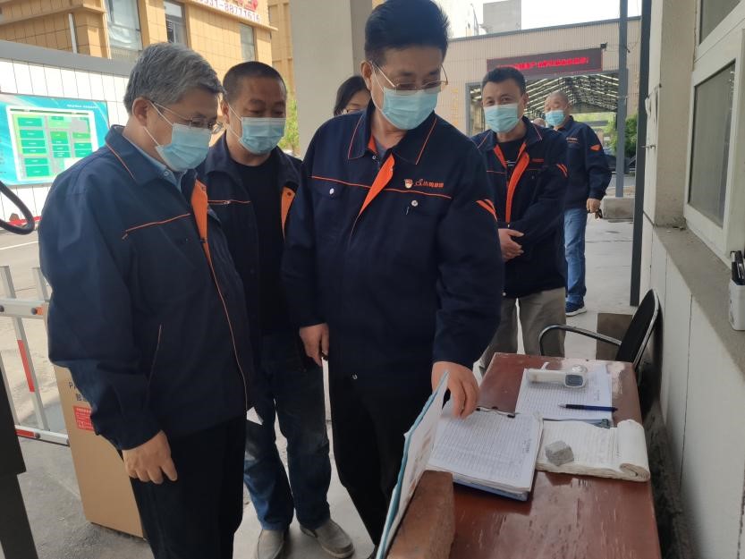 督導檢查組檢查集團園區大門疫情防控工作情況,叮囑工作人員守好疫情防控第一道防線。