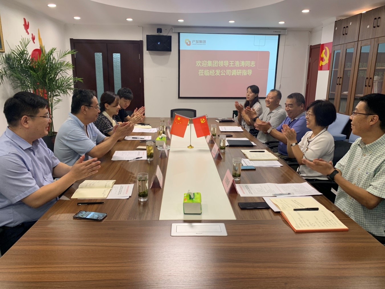 8月5日上午,產發集團黨委委員、副總經理王浩濤同志一行到濟南經濟發展有限公司進行調研。企管集團黨委書記、董事長張欣同志,黨委副書記、總經理朱風亮同志等陪同調研。經發公司黨支部書記、執行董事長劉濤同志以及經發公司經營班子成員迎接調研并匯報工作。