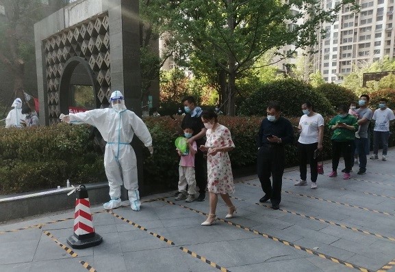 集團支援天橋區(qū)濱河雅居的下沉人員由翟思成帶隊,帶領(lǐng)郭正亮、杜瑞帥、趙士民、楊世興、馮鵬飛等5名志愿者,自4月27日進駐濱河雅居社區(qū)以來,他們聽從社區(qū)安排,進行核酸檢測維持秩序,人員摸排、統(tǒng)計數(shù)據(jù)等工作。“每天下班都得晚上10點半了”, 翟思成說,為保證社區(qū)居民核酸檢測不漏一人,雖然大家的居住地距離濱河雅居都很遠,但還是克服重重困難按時到崗,盡職盡責(zé)地完成社區(qū)工作。特別是自4月28日以來,濱河雅居樓棟出現(xiàn)密接和次密接,需要24小時管控,金鐘集團的志愿者白天維持核酸檢測秩序、給管控居民送菜送食品,晚上還要值夜班、進行住戶摸查,條件艱苦、工作勞累,但是志愿者們沒有怨言、只有擔(dān)當,他們用實際行動踐行國企責(zé)任,使命擔(dān)當。