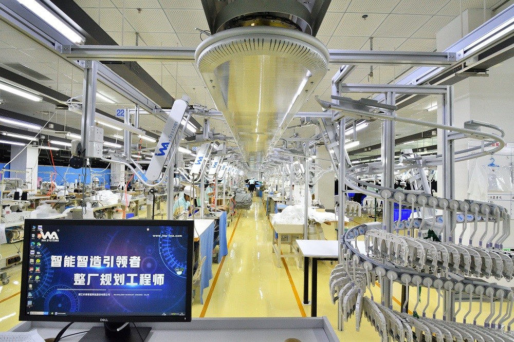 除了面料染色的智能化改造,圍繞服裝的設計、研發、生產,元首集團也正在加快變革,通過探索和引進自動化縫制單元、智能吊掛系統、柔性整燙系統、自動立體倉儲和物流配送系統,建立生產流程的MES系統管理,提高生產效率。