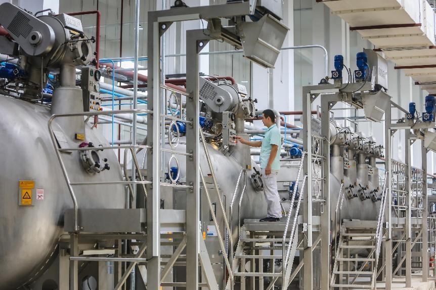 在元首集團針織服裝產業園,引人注目的不僅是產業變革和調整,更有智能化升級后的質量提升。其中,面料印染作為服裝生產研發的關鍵環節,更能體現出企業科技創新實力和綠色發展水平,也是激活新舊動能轉換的“主引擎”。